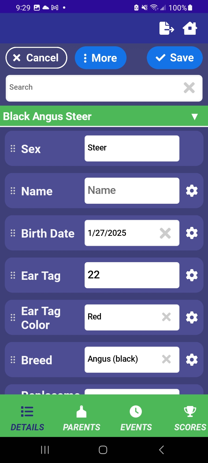 Keep detailed records for every animal in your herd. Organize by calves, cows, bulls, or view everything at once. Archive animals when they leave the herd.